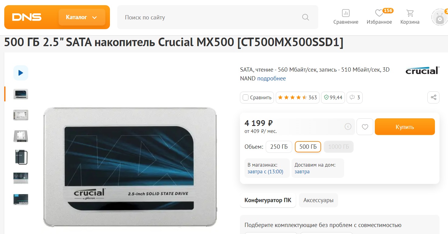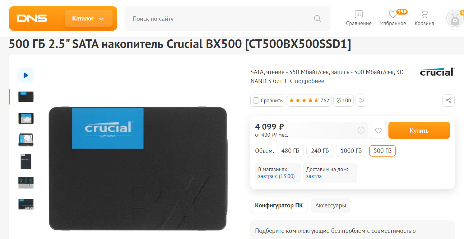 Всем большое спасибо за советы и обсуждение! Брать буду SSD диск Crucial MX500 500ГБ (CT500MX500SSD1). Я так понял это удачная модель? Сейчас стоит в районе 4 тыс. руб.