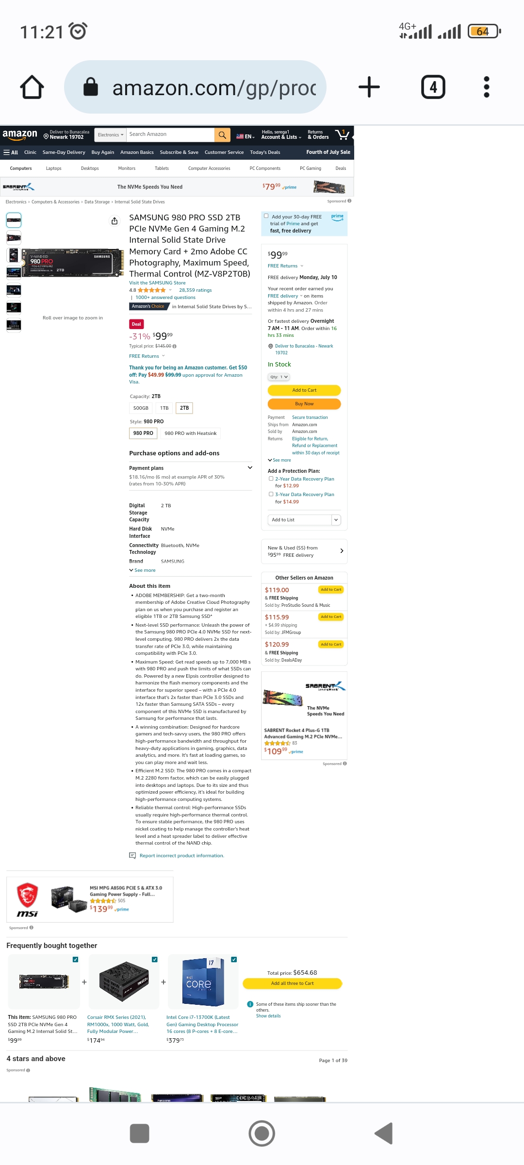 А у меня в конце 2019 был выбор либо взять 860 EV0 500GB за 5500 либо на 1TB за 10 с чем-то. В итоге купил на 1TB потому что, я прочил что версия на 1Tb не теряет скорости в отличие от 500GB А насчет 860ПРО сомневаюсь что он в играх быстрее чем EVO на 1tb