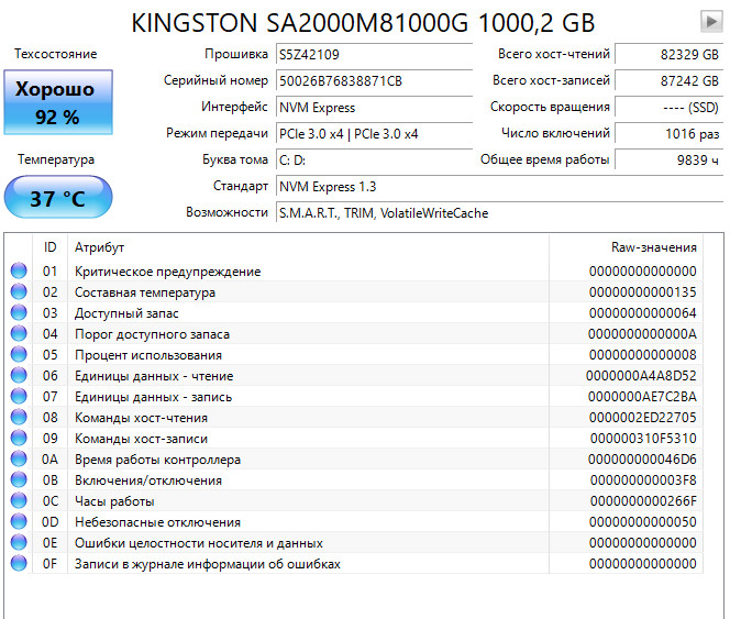 ========================================= Перед публикацией скриншотов Crystal Disk Info в меню "Сервис" >> "Дополнительно" >> "Raw-значения" выберите вариант "10 [DEC]". Это упростит восприятие информации. В меню "Сервис" ставьте галочку "Скрыть серийный номер".