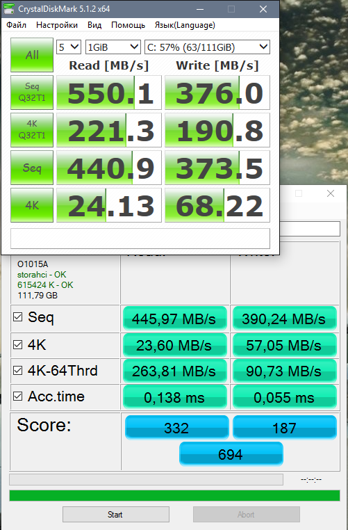 Результаты чистыми назвать конечно нельзя - кроме того, что диск почти забит, с него работает винда, в хроме идёт просмотр трансляции, но после Kingstone UV300 лично для меня эти результаты показались отличными, а более подробное исследование новинки уже дело обзорщиков