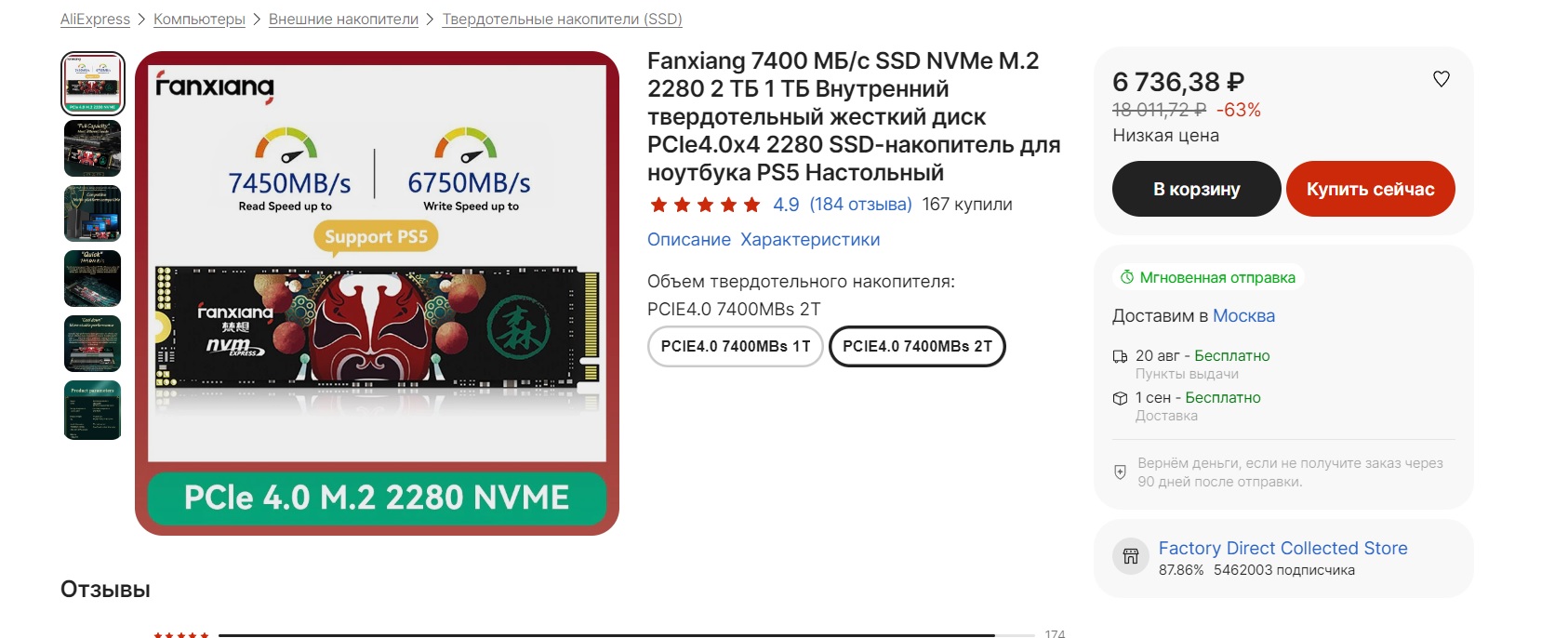 gyn070x Глянул немного инфы на ssd на который вы скинули ссылку. Он называется Fanxiang s790 у него контроллер MAP1602 и память TLC YMTC 232L. То есть 232 слойная флэш? О_О Честно говоря за такую цену он очень интересен. А я смогу отменить заказ, на алиэкспрессе, если продавец уже начал паковать? А то я на алишке редко покупаю, и ни разу не отменял заказ.