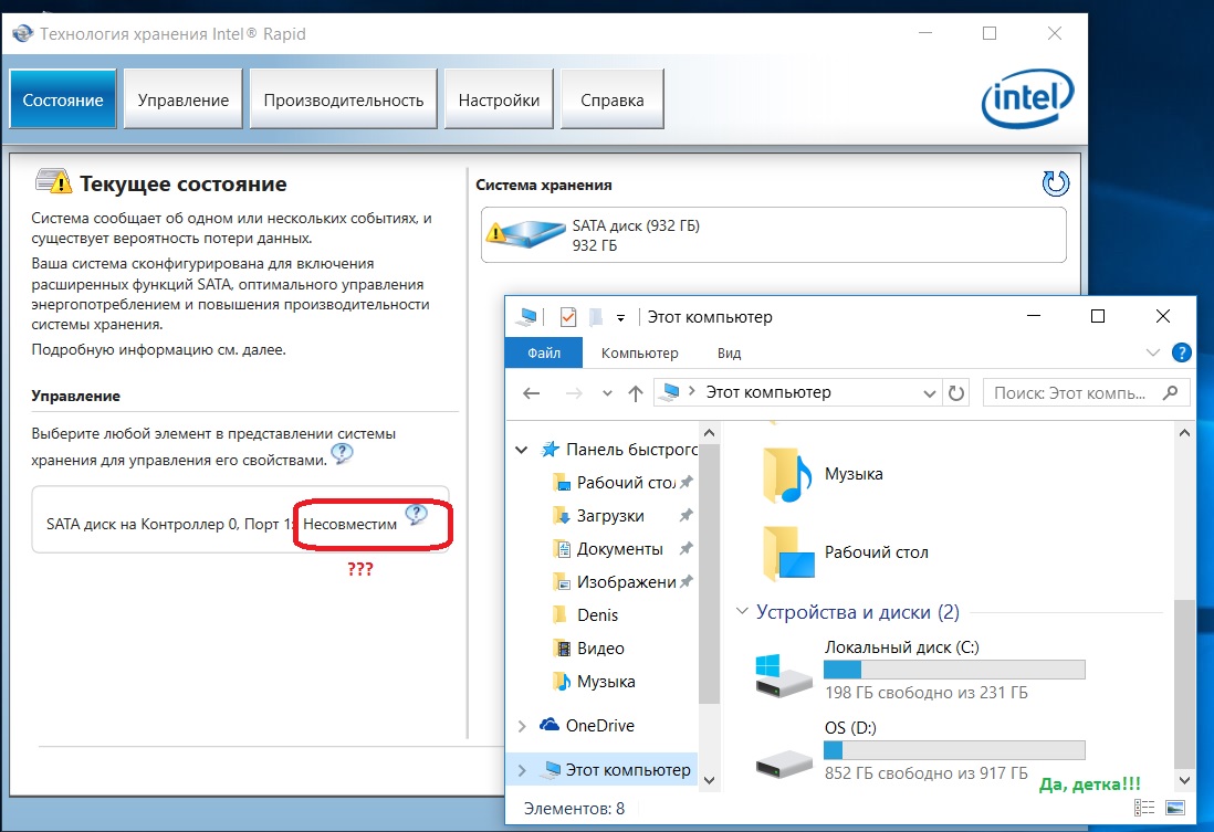 только софтина Intel Rapid Storage Technology что-то ругается на HDD