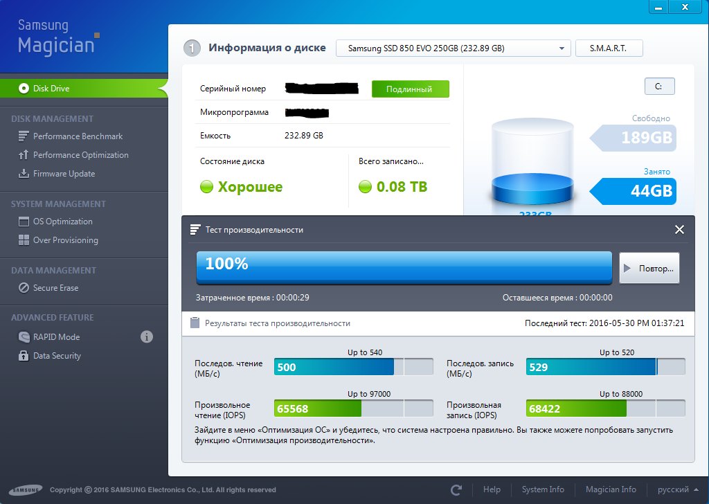 Всем доброго дня. Наконец то пришел мой Samsung 850 EVO 250 GB и я поставил на него систему. Вот такие результаты он показывает, что скажите?