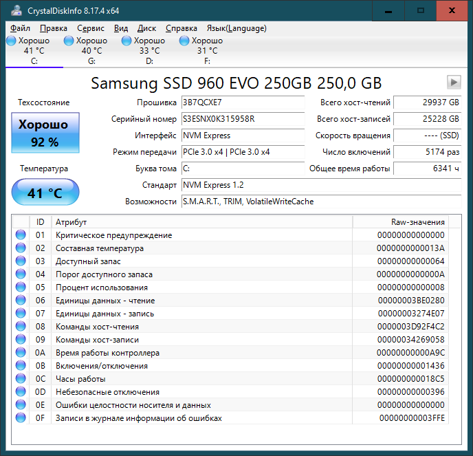 7. Для того что бы оценить состояние диска SSD воспользуйтесь прогнраммой Crystal Disk Info. Перед выкладыванием скриншотов Crystal Disk Info в меню Сервис>Дополнительно>Raw-значения выберите вариант "10 [DEC]" это несколько упростит восприятие информации.