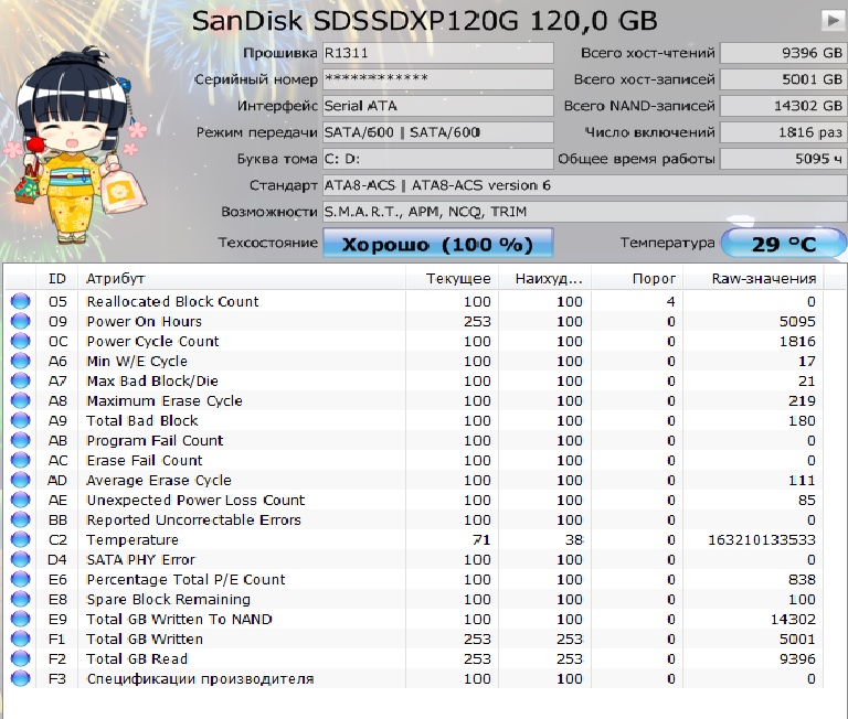 Определёный интерес могут представлять новые SSD второй половины 2015 года на TLC NAND (но брать их стоит в объёмах не меньше 240 Гбайт - http://www.overclockers.ru/lab/71280/ob ... .html): - SmartBuy Revival, OCZ Trion 100, Patriot Blast, Kingston UV300 (контроллер Phison PS3110-S10 + 19 нм TLC NAND); - ADATA Premier SP550 (Silicon Motion SM2256K + 16 нм TLC NAND) - медленней Phison PS3110-S10 + 19 нм TLC NAND; - Crucial BX200 (Silicon Motion SM2256 + 16 нм TLC NAND) - быстродействие ещё ниже, чем у ADATA Premier SP550. Нужно учитывать, что эти SSD не рассчитаны на активные операции (2-3-5 и т.д. Гбайт) с большими объёмами данных ибо значительная часть быстродействия обеспечивается небольшим SLC-кэшем - см. обзор, ссылка на который чуть выше.