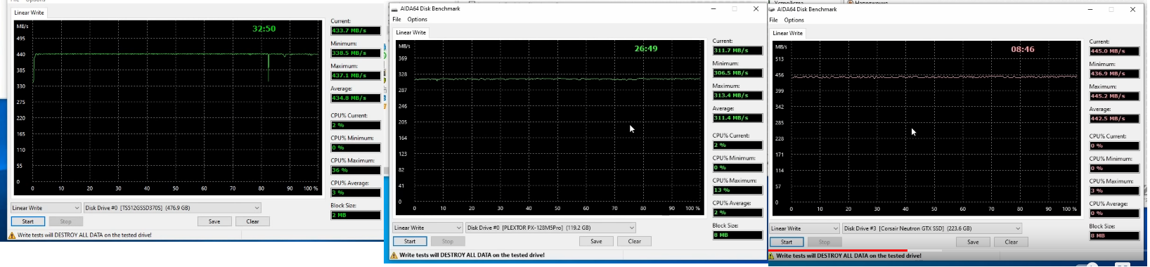 Что за наивность, пару лет назад, али, mlc Если бы с десяток лет назад. Ты же выложил график аиды64 и там похоже даже не tlc а что не наесть самый убогий qlc. Если бы у тебя были mlc чипы то график был бы просто прямая линия. Вот взял с канала prossd графики