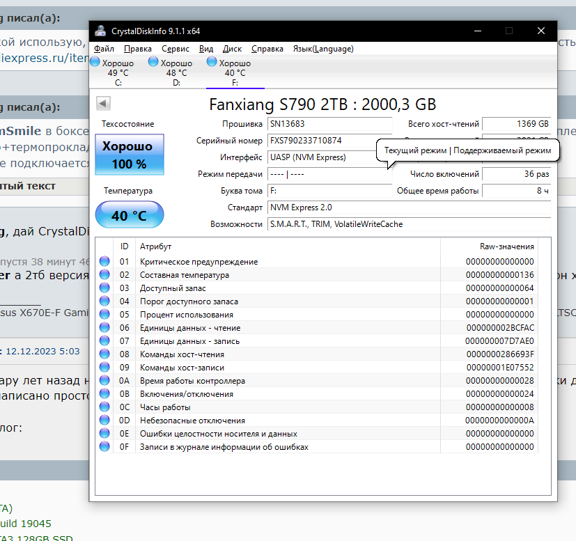 Добавлено спустя 6 минут 45 секунд: Вот пока я пытался прогнать бенч с морды корпуса, вот смарт какой стал