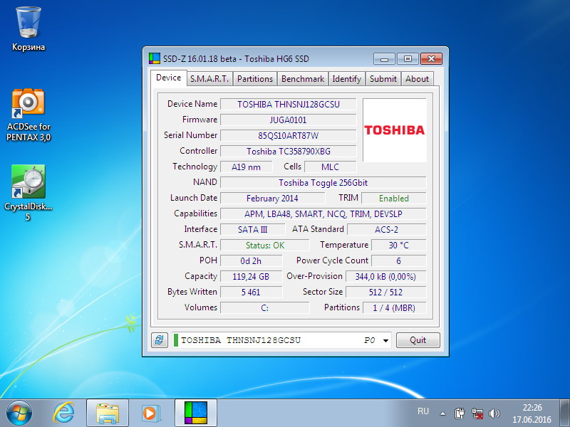 Вот такой? Я думал зверь, чистая Тошиба, неубиваемый (память там супер), взять для издевательств? А можешь SSD-Z скрин сделать? Что хоть там, покажет? Может там уже не то?