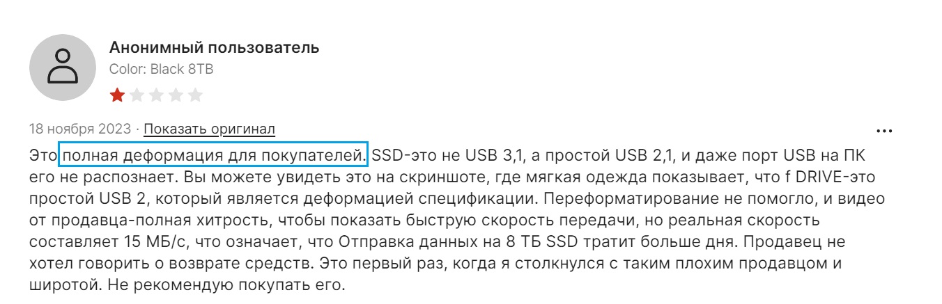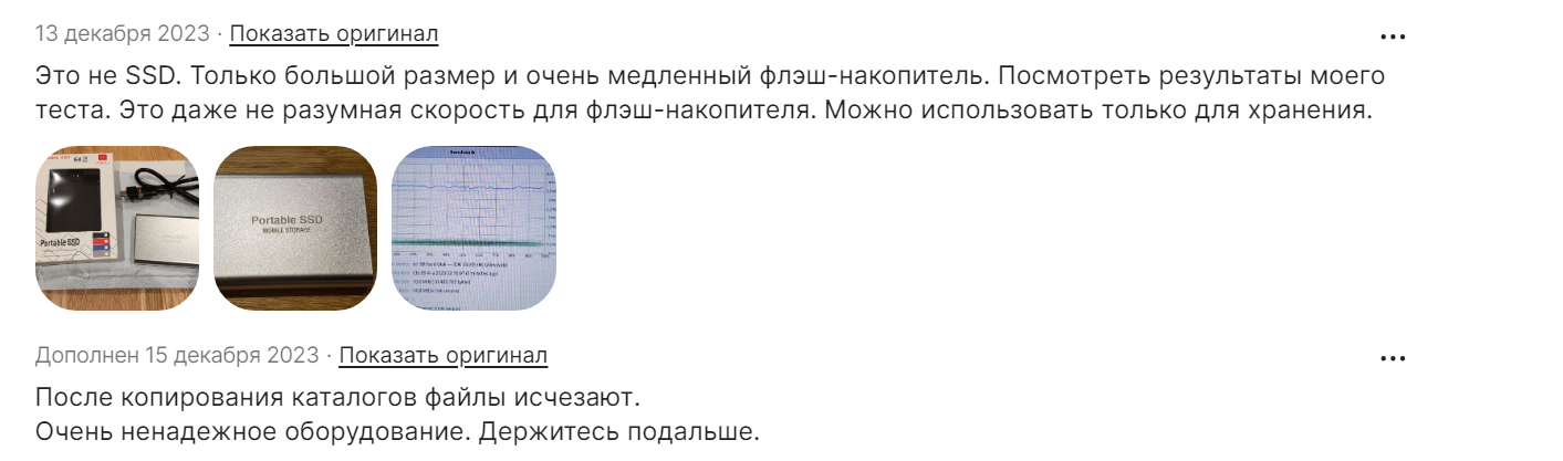 ========================================= На различных онлайн-площадках как российских (Ozon, Wildberries, а также онлайн-барахолках типа Avito), так и иностранных (Aliexpress/Taobao и т.п.) присутствует большое количество SSD, как мимикрирующих под накопители Samsung, Kingston, WD и т.д., так и прямых подделок, на первый взгляд почти неотличимых от оригинала.