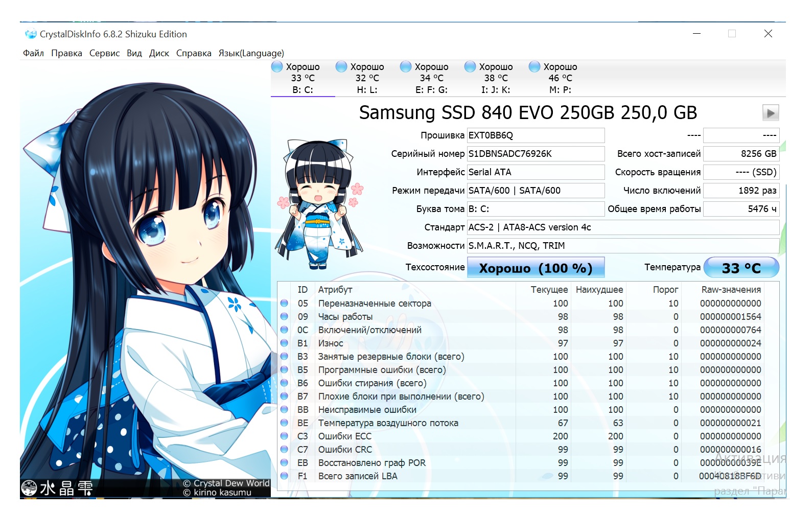 1. Переключаетесь в BIOS на AHCI (Если помимо SSD есть Raid-массив то там должен стоять RAID). Делается это до чистой установки Windows. Если производится перенос Windows Vista/7, то устанавливается патч Windows вот этим, для включения AHCI. Если AHCI не получается найти в BIOS, стоит поискать новую версию BIOS к мат.плате. Подключать SSD накопитель следует к чипсетным разъёмам, то же касается при выборе между чипсетным Sata II и Marvell/ASMedia/JMocron. 2. Скачиваете и ставите драйвер AMD_AHCI или Intel_RST Ссылки на драйвера ниже. (Устанавливать данные драйвера при желании/необходимости, по наблюдениям во многих случаях с драйвером IRST[для чипсетов Intel] в бенчмаркингах немного увеличиваются результаты, а с AMD[для чипсетов AMD] наоборот - при установке вместо стандартного msahci(win7) наблюдается ухудшение результатов). Поэтому для начала стоит запустить тест AS SSD Benchmark, затем поставить драйвер, убедиться что TRIM работает см.пункт 4, далее снова тест скорости. Если скорость упала (кстати, эффект может проявиться и не сразу, а лишь через некоторое время), то лучше вернуть Microsoft драйвер MSAHCI через диспетчер устройств. 3. Резервирование места на диске. Рекомендуется оставлять на накопителе всегда не менее ~10% емкости, чтобы уменьшить усиление записи и повысить эффективность работы ITGС и TRIM. Создание разделов выполняется по своему усмотрению. 4. Для того чтобы узнать работает ли TRIM воспользуйтесь программой TrimCheck. (Проверить включена ли поддержка TRIM в ОС можно следующим образом: необходимо набрать в командной строке fsutil behavior query DisableDeleteNotify (необходимы права администратора). Если ответ будет 0, то TRIM работает и включен. Если ответ будет 1, то включить TRIM можно командой: fsutil behavior set DisableDeleteNotify 0. По умолчанию в Windows 7 TRIM включен). 4.1. Для того чтобы увидеть драйвер под которым работает диск, включен ли AHCI и выровнен ли раздел, следует просто запустить программу: AS SSD Benchmark. #77#77 Если выровнен и включен AHCI, то строка с выравниванием - зеленого цвета и заканчивается ОК. Если нет, то строка красного цвета и заканчивается BAD. Выравнивать с помощью Paragon Alignment Tool (PAT). 4.2. Для того что бы оценить состояние диска SSD воспользуйтесь SMART-монитором Crystal Disk Info. Перед выкладыванием скриншотов Crystal Disk Info в меню Сервис>Дополнительно>Raw-значения выберите вариант "10 [DEC]" это несколько упростит восприятие информации утилиты форумчанами. SSDLife показывает общую инфу о SSD и прогнозирует срок жизни. Прогноз её очень посредственный и вряд-ли ему стоит верить. 5. Отключить очистку буфера кэша записей Windows для этого устройства - галочка должна отсутствовать. Разрешить кэширование записей - обязательно включено. 6. Ставить на SSD рекомендуют Windows 7 и более новые (не Vista/XP/2003 и т.д.), а также Linux с ядром 2.6.33 и новее. Т.к. только в них реализована поддержка TRIM, при установке разделы создаются выровненными и по умолчанию произведены некоторые оптимизации. Хотя использовать SSD под управлением Windows XP можно, на накопителях с хорошей реализацией ITGC или при использовании стороннего софта для отправки на накопитель команды TRIM.