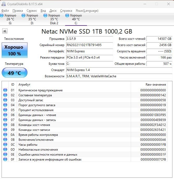 ========================================= Перед публикацией скриншотов Crystal Disk Info в меню "Сервис" >> "Дополнительно" >> "Raw-значения" выберите вариант "10 [DEC]". Это упростит восприятие информации. В меню "Сервис" ставьте галочку "Скрыть серийный номер".