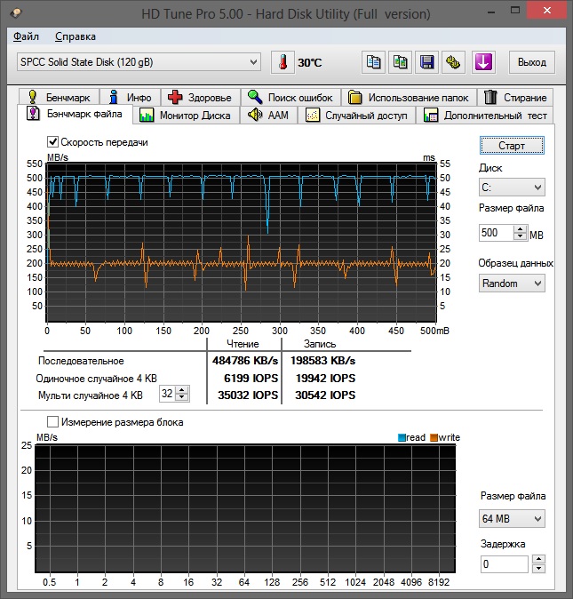 лянул на скрин - мдаа...и что мы там тестируем? 500 МБ? То есть пол гигабайта? Лоль - диск даже икнуть не успевает...или с ГБ перепутали (500 000 МБ)... Тем более тестиравать нулями (zero pattern) на ССД с контроллером от Phison -да он там хоть 6000МБ/с по всей поляне нарисует, т.к "сжимает на лету" т.е реально практически ничего не пишет. Надо выставлять в этом тесте "рандом паттерн" и более-менее весомый объём в 200-300 ГБ. (скажем, 250000 МБ). Удачи!