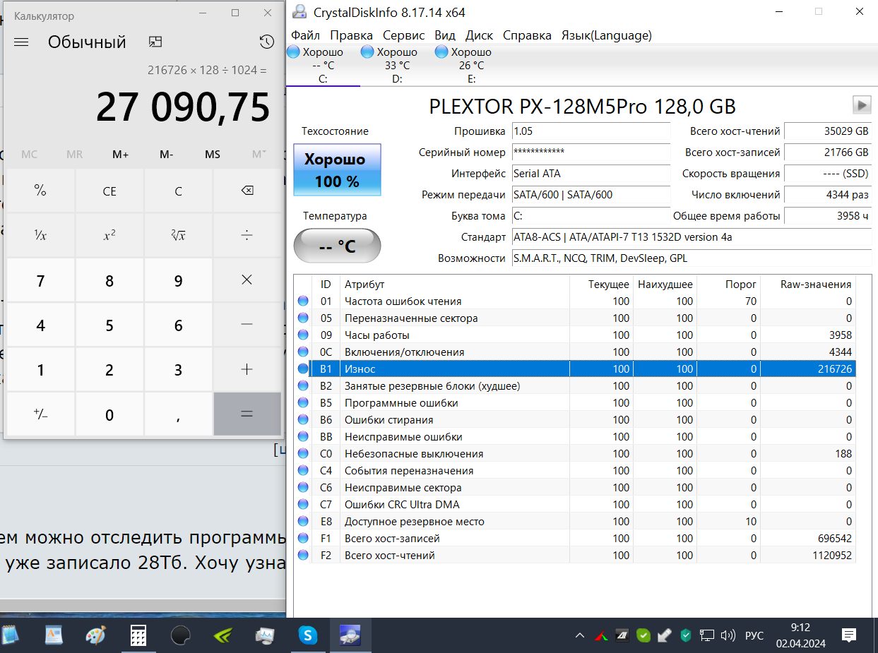 7. Для того что бы оценить состояние диска SSD воспользуйтесь прогнраммой Crystal Disk Info. Перед выкладыванием скриншотов Crystal Disk Info в меню Сервис>Дополнительно>Raw-значения выберите вариант "10 [DEC]" это несколько упростит восприятие информации.