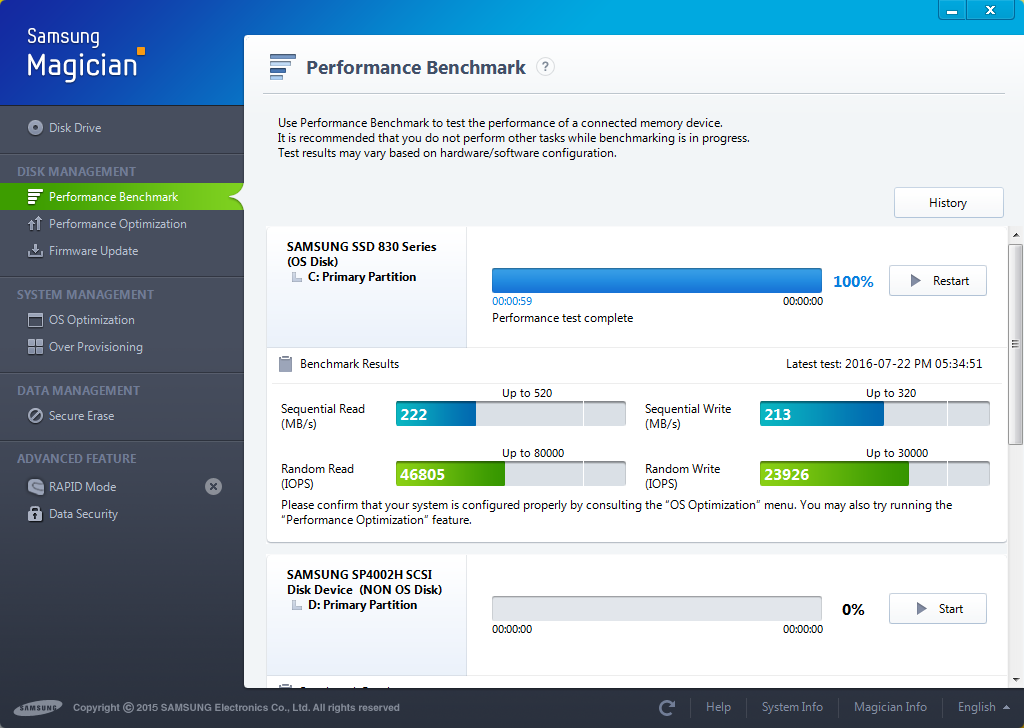 который в описанных тестах дает 500/500, и на котором уже есть 220ая модель? весьма сомнительно. вообще такие скорости получить от современного диска такого обьема малореально, вероятны внешние причины.