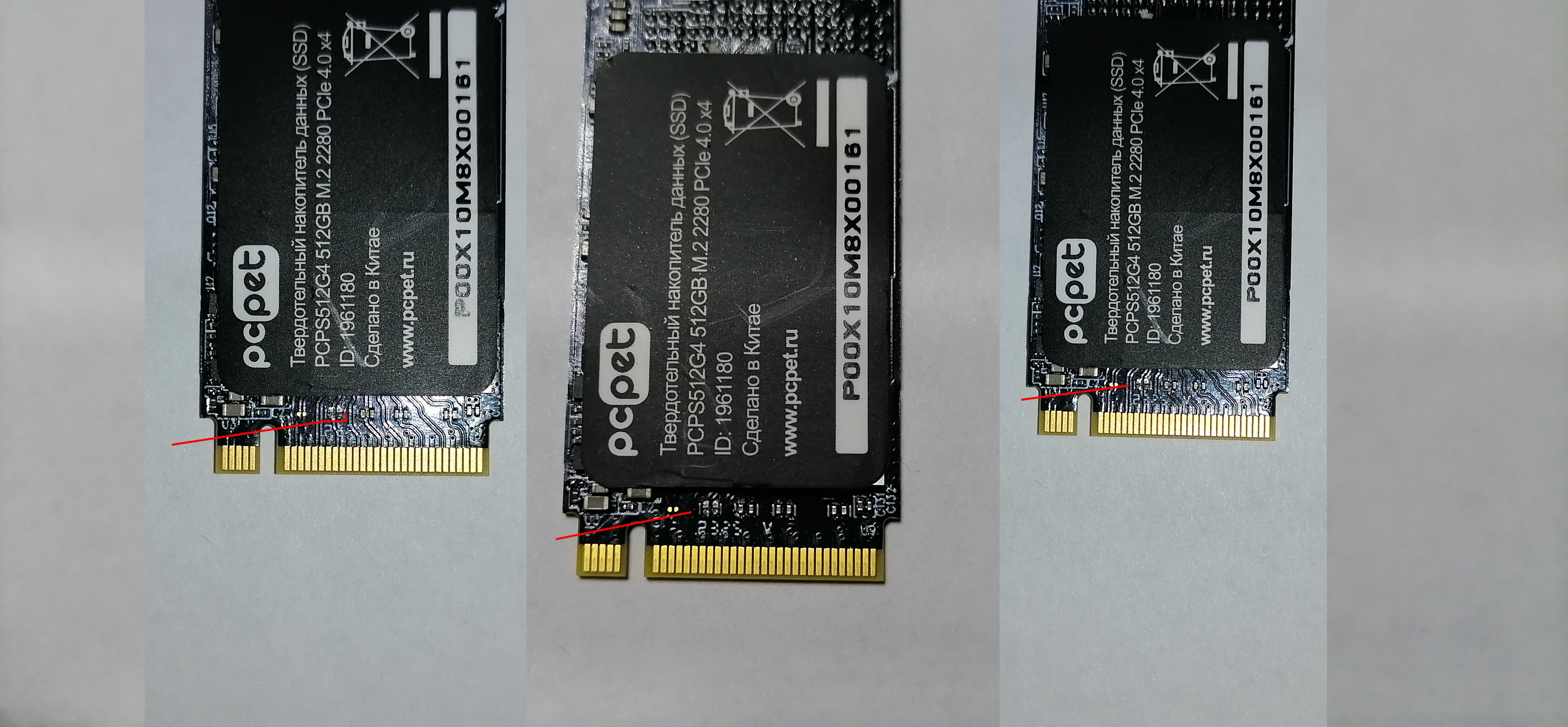 Опознать подделки порой можно даже визуально (не такая печатная плата и расположение микросхем у моделей M.2, не тот корпус для SATA 2.5" и/или его элементы (например, подделки под Kingston собираются зачастую обычными винтиками "под крестовую отвёртку", а не Torx), блёклая краска на этикетках и т.д.), хотя есть и качественные, определяемые только по мелким опечаткам на этикетках, проверкой в программах и поведением в тестах. Самый надёжный способ - только последний, ибо тот же Samsung Magician мошенники уже научились обманывать. Неплохая публикация 2023 года на Пикабу с описанием некоторых таких подделок, целенаправленно приобретённых на Aliexpress (подчеркну ещё раз: по факту их можно приобрести и на российских торговых площадках): https://pikabu.ru/story/feyk_ssd_s_alie ... u_10234249 Видеоролик proSSD о поддельном Kingston KC600 512 Гбайт: https://www.youtube.com/watch?v=XMI9BH_jn2w