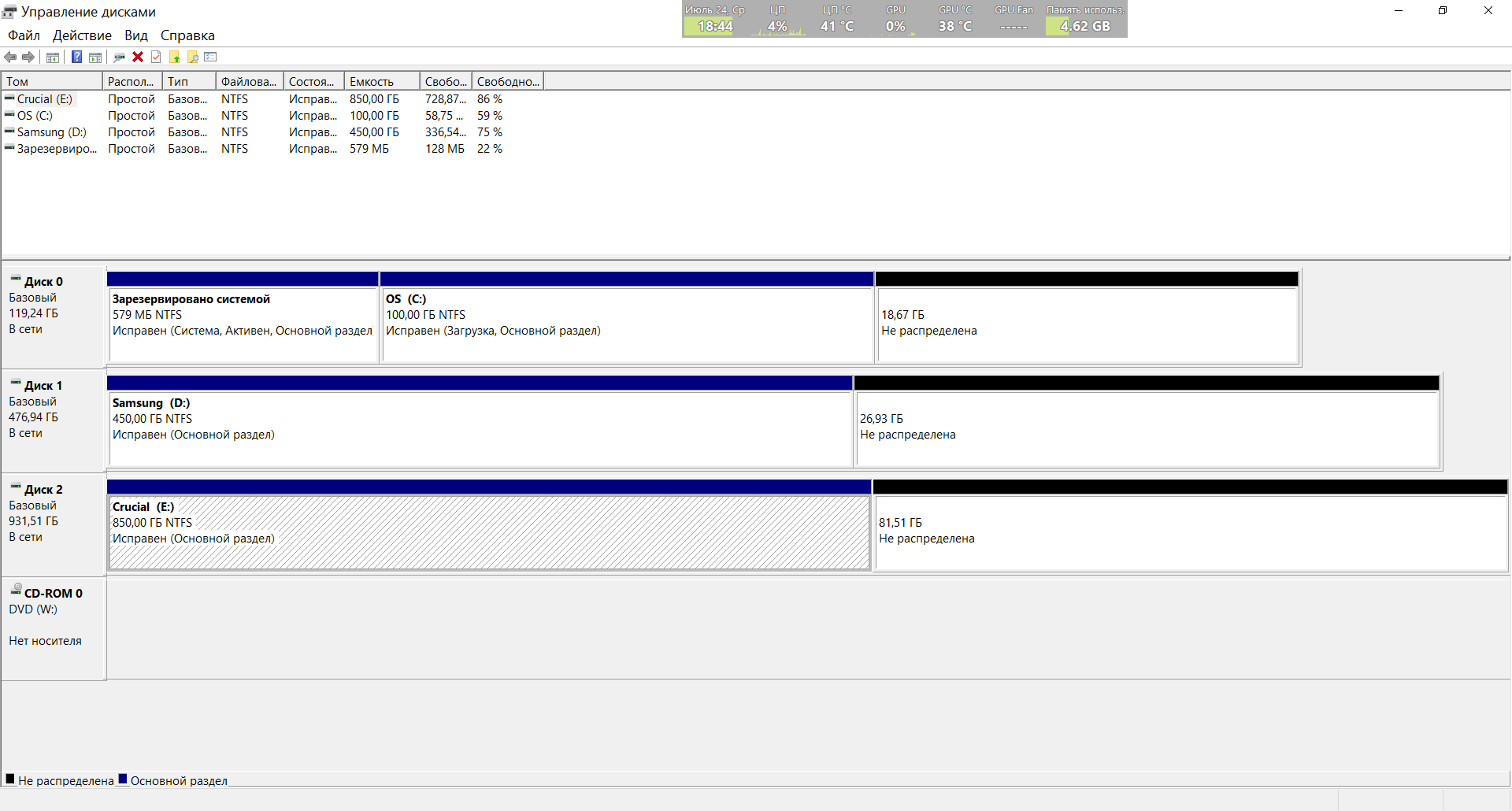 4. Разметка на разделы - как угодно. В современных SSD уже нет нужды резервирования дополнительного объёма, но, тем не менее, стоит стараться оставлять ~10-15% объёма свободными хотя бы большую часть времени работы (для накопителей на Silicon Motion SM2246XT это наоборот критично, иначе есть риск преждевременного выхода из строя накопителя).
