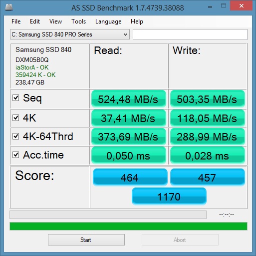 Samsung 840 Pro 256Gb Месяц стоит под системой, обновил прошивку до DXM05B0Q, Intel Rapid 12.8.0.1016