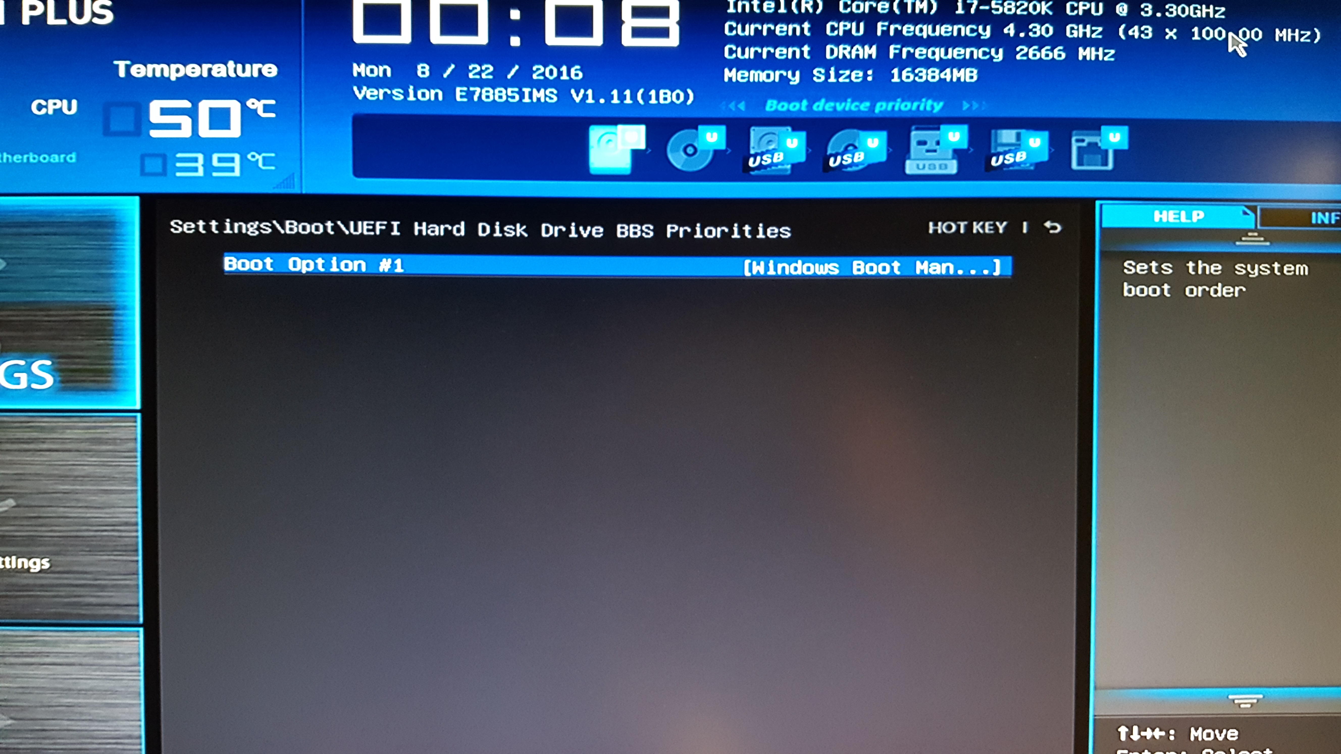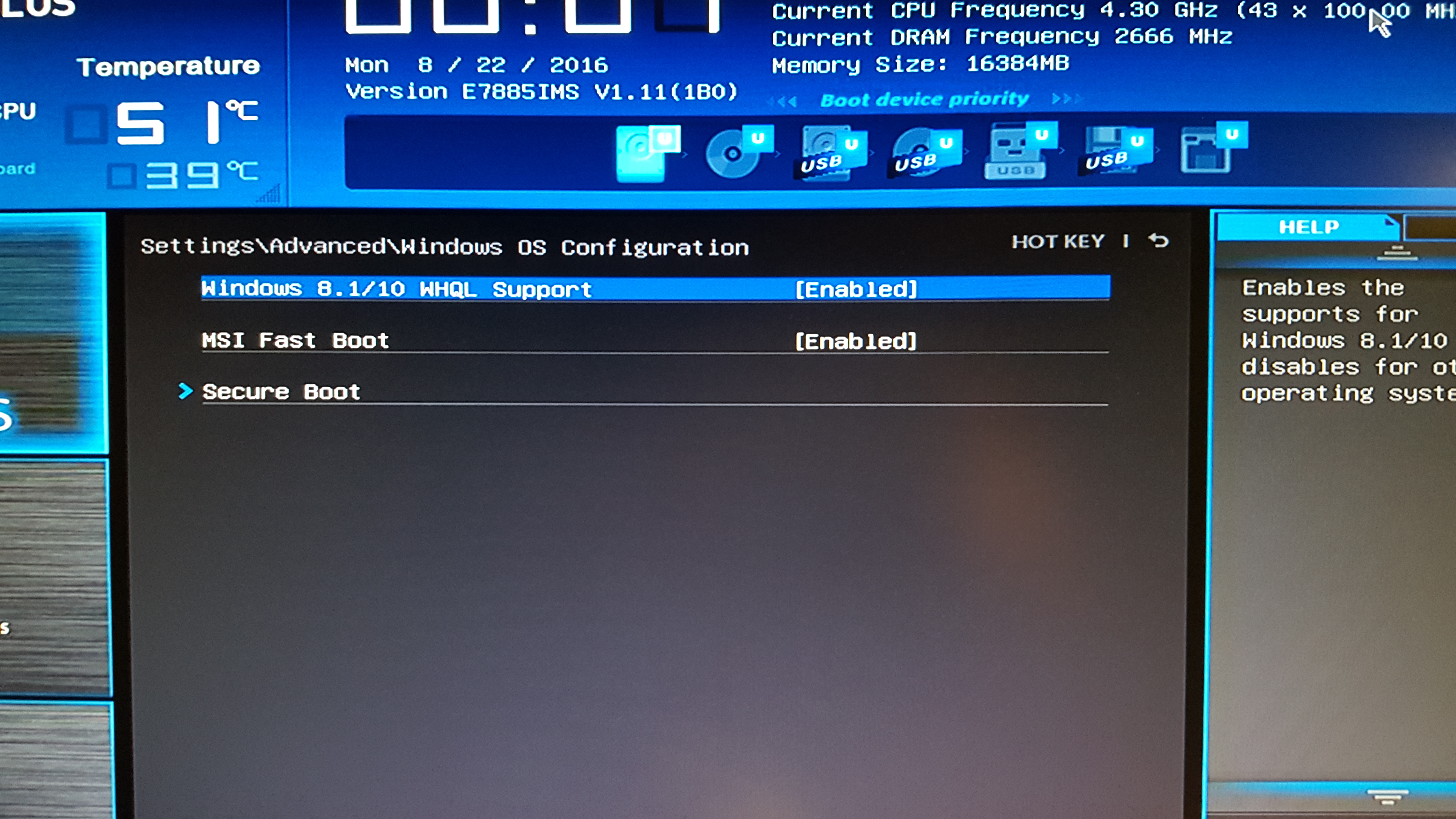 Street77 В БИОСе выставить UEFI сохранить изменения и перезагрузится, затем сразу зайти в БИОС. Выбрать загрузку с Windows Boot Manager. Вот несколько скриншотов надеюсь поможет с настройкой БИОСа. Листай инструкцию к материнке.