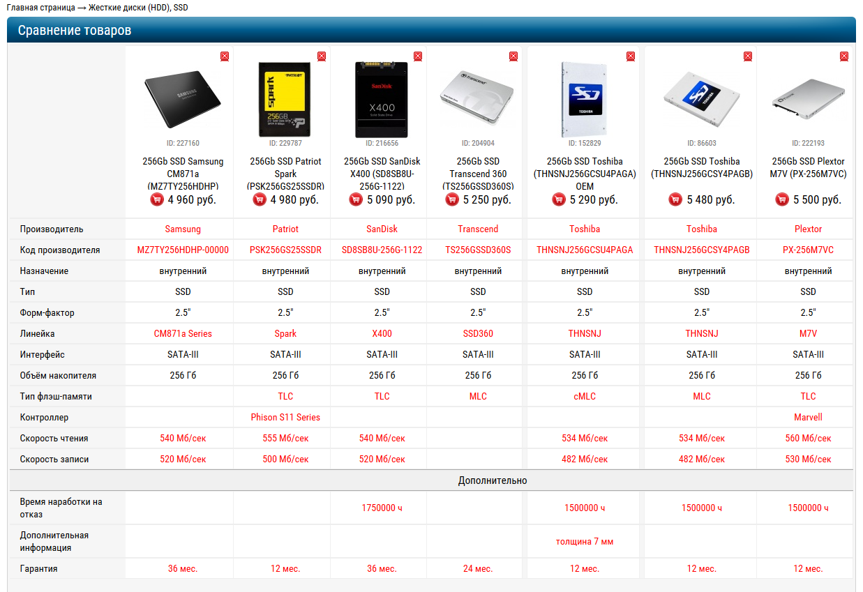 Mainstream-сегмент: - Plextor M5S (контроллер Marvell 88SS9187; в начале был на 88SS9174, но это было очень давно); - Plextor M6S (прошивку в накопителе обновлять не рекомендуется - в значительной части случаев это приводит к проблемам) (контроллер Marvell 88SS9188); - Crucial M4/M500/M550/MX100, SanDisk Ultra Plus (он же SanDisk X110, не путать с SanDisk Ultra II на TLC NAND) (контроллеры Marvell 88SS9174/9175/9187/9189); - Transcend SSD370, Crucial BX100 (контроллер Silicon Motion SM2246EN; Crucial BX100 не путать с BX200 - кардинально ухудшенный вариант на TLC и медленном контроллере SM2256K); - Samsung 850 EVO (учитывайте: накопитель на TLC 3D V-NAND, а ценник на него часто сопоставим с моделями на MLC NAND); - Samsung 750 EVO (учитывайте: накопитель на TLC NAND, а ценник на него часто сопоставим с моделями на MLC NAND); - Toshiba HG5d, он же - Q-Series, Q-Series Pro, .....EZSWA, .....EZSTA, .....THNSNH (модифицированные контроллеры Marvell 88SS9187 и 88SS9189; не путать с ".....THNSNS" на SandForce SF-2281); - Kingston HyperX Savage, Smartbuy Firestone (Phison PS3110-S10 + MLCX NAND Toshiba); - Corsair Neutron GTX, Corsair Neutron, Seagate 600 (контроллер LAMD LM87800); - Intel 520/530 (контроллер SandForce SF-2281; может перемаркировываться в Intel BF29AS41BB0); - Transcend SSD340/SSD740, KingFast F8 (контроллер JMicron JMF667H; за полным списком лучше заглянуть в FAQ); - Kingston HyperX 3K (контроллер SandForce SF-2281).