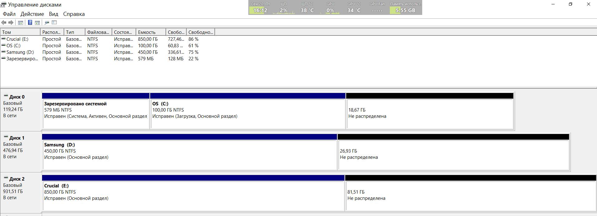 4. Разметка на разделы - как угодно. В современных SSD уже нет нужды резервирования дополнительного объёма, но, тем не менее, стоит стараться оставлять ~10-15% объёма свободными хотя бы большую часть времени работы (для накопителей на Silicon Motion SM2246XT это наоборот критично, иначе есть риск преждевременного выхода из строя накопителя).