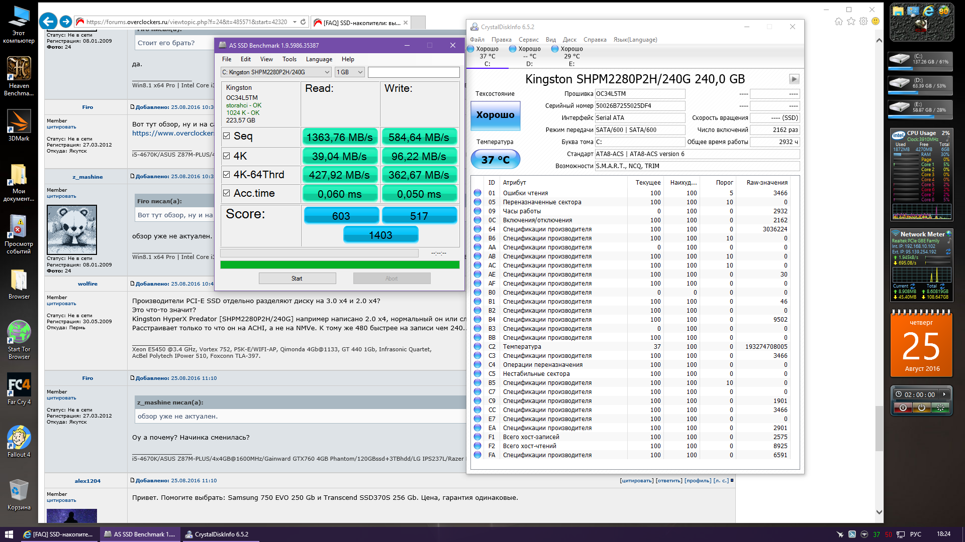 PCI-Express SSD: - Kingston HyperX Predator (контроллер Marvell 88SS9293; обзор); - Samsung SM951 (выпускается в версиях AHCI и NVMe; обзор), по Samsung 950 Pro (только NVMe, чуть медленней SM951) статистика отзывов пока не накоплена - новый SSD.