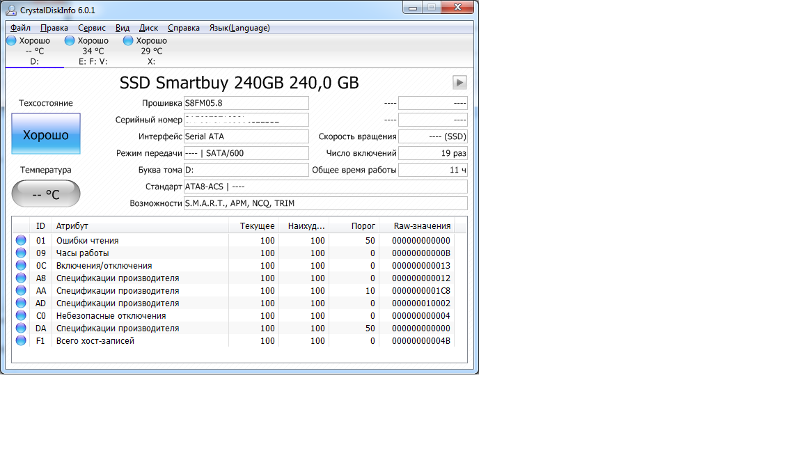 С оговоркой эксплуатации на штатном драйвере msahci (драйвер Intel [он же iaStorA, IRST] на контроллер SATA не ставить): - SmartBuy Ignition 2, GoodRAM C50/100, PQI S522, Corsair Force LS 240 Гбайт**, Patriot Blaze 240 Гбайт*** и прочие Phison-based (контроллер Phison; за полным списком лучше заглянуть в FAQ); Проблема заключается в падении скоростных характеристик на операциях записи. По отзывам, встречается при прошивке версии 7.7. Исправляется обновлением прошивки до версии 7.9 (после чего может потребоваться выполнение Secure Erase).