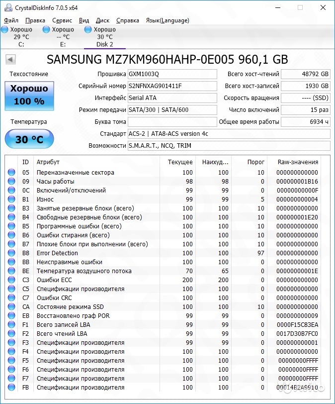 И вот я хочу купить б/у-шный Samsung SM863 960 GB (MZ7KM960hahp) за 14 000 рублей.