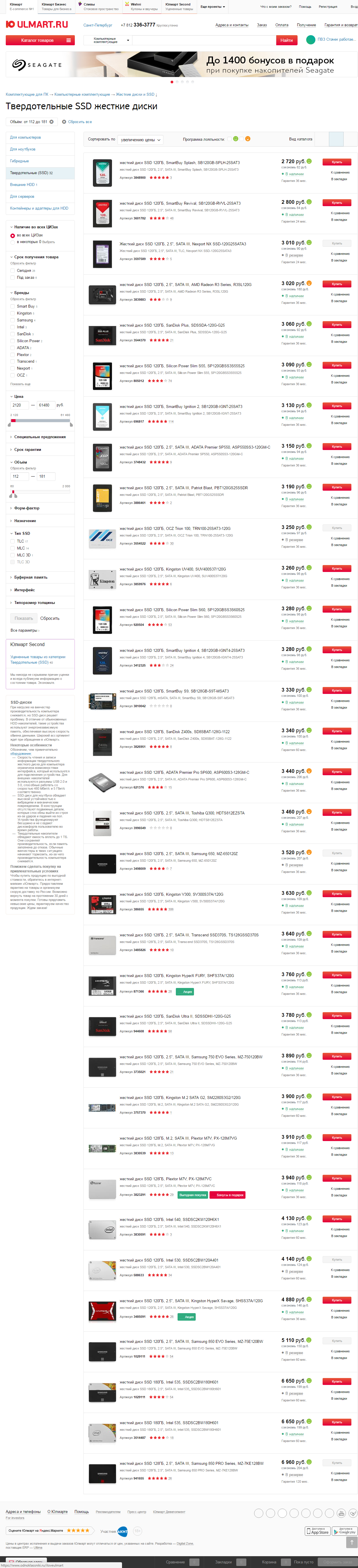 Mainstream-сегмент: - Plextor M5S (контроллер Marvell 88SS9187; в начале был на 88SS9174, но это было очень давно); - Plextor M6S (прошивку в накопителе обновлять не рекомендуется - в значительной части случаев это приводит к проблемам) (контроллер Marvell 88SS9188); - Crucial M4/M500/M550/MX100, SanDisk Ultra Plus (он же SanDisk X110, не путать с SanDisk Ultra II на TLC NAND) (контроллеры Marvell 88SS9174/9175/9187/9189); - Transcend SSD370, Crucial BX100 (контроллер Silicon Motion SM2246EN; Crucial BX100 не путать с BX200 - кардинально ухудшенный вариант на TLC и медленном контроллере SM2256K); - Samsung 850 EVO (учитывайте: накопитель на TLC 3D V-NAND, а ценник на него часто сопоставим с моделями на MLC NAND); - Samsung 750 EVO (учитывайте: накопитель на TLC NAND, а ценник на него часто сопоставим с моделями на MLC NAND); - Toshiba HG5d, он же - Q-Series, Q-Series Pro, .....EZSWA, .....EZSTA, .....THNSNH (модифицированные контроллеры Marvell 88SS9187 и 88SS9189; не путать с ".....THNSNS" на SandForce SF-2281); - Kingston HyperX Savage, Smartbuy Firestone (Phison PS3110-S10 + MLCX NAND Toshiba); - Corsair Neutron GTX, Corsair Neutron, Seagate 600 (контроллер LAMD LM87800); - Intel 520/530 (контроллер SandForce SF-2281; может перемаркировываться в Intel BF29AS41BB0); - Transcend SSD340/SSD740, KingFast F8 (контроллер JMicron JMF667H; за полным списком лучше заглянуть в FAQ); - Kingston HyperX 3K (контроллер SandForce SF-2281).