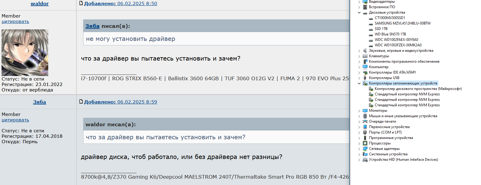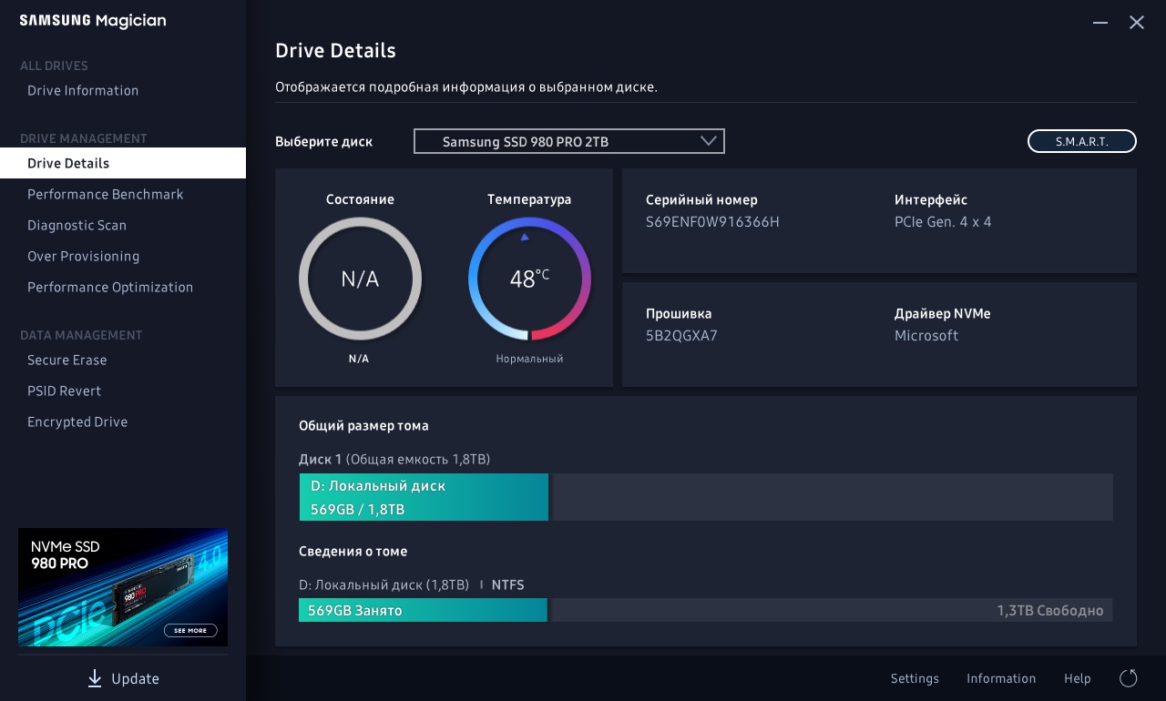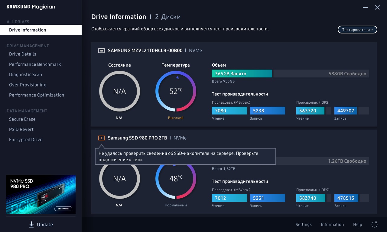 добрый день! Samsung 980 Pro 1 тб, в БИОС виден, в оборудовании виден, (это ОЕМ версия для ноутов) на нем система установлена, он единственный в ПК, не могу установить драйвер, при запуске установки пишет "устройство не подключено" или что то в этом роде, ставил с оф сайта самсунгов, пытался ставить экспресс NVME так же с самсунгов. как победить?