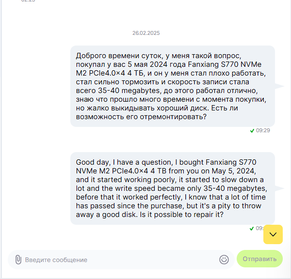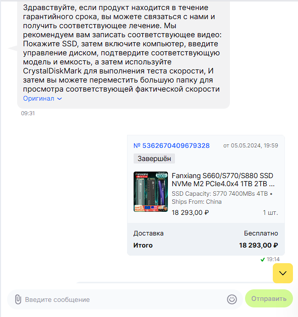 Опознать подделки порой можно даже визуально (не такая печатная плата и расположение микросхем у моделей M.2, не тот корпус для SATA 2.5" и/или его элементы (например, подделки под Kingston собираются зачастую обычными винтиками "под крестовую отвёртку", а не Torx), блёклая краска на этикетках и т.д.), хотя есть и качественные, определяемые только по мелким опечаткам на этикетках, проверкой в программах и поведением в тестах. Самый надёжный способ - только последний, ибо тот же Samsung Magician мошенники уже научились обманывать. Неплохая публикация 2023 года на Пикабу с описанием некоторых таких подделок, целенаправленно приобретённых на Aliexpress (подчеркну ещё раз: по факту их можно приобрести и на российских торговых площадках): https://pikabu.ru/story/feyk_ssd_s_alie ... u_10234249 Видеоролик proSSD о поддельном Kingston KC600 512 Гбайт: https://www.youtube.com/watch?v=XMI9BH_jn2w