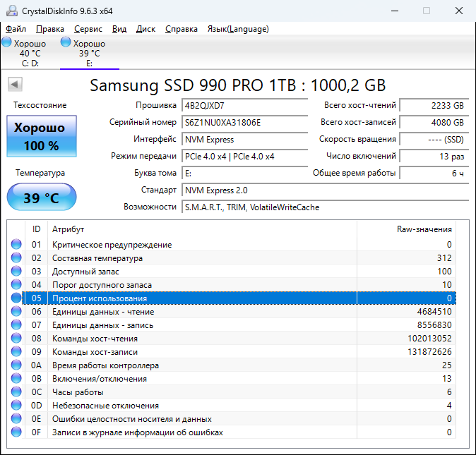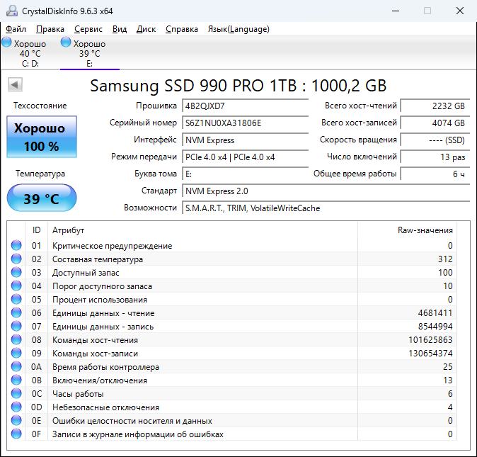 спеку диска открыли? давайте я вам ссылочку дам а то вдруг снова будите чем угодно гадать, но не советы выполнять https://semiconductor.samsung.com/consu ... d/990-pro/ Более того даже процитирую оттуда, а то достал флуд: