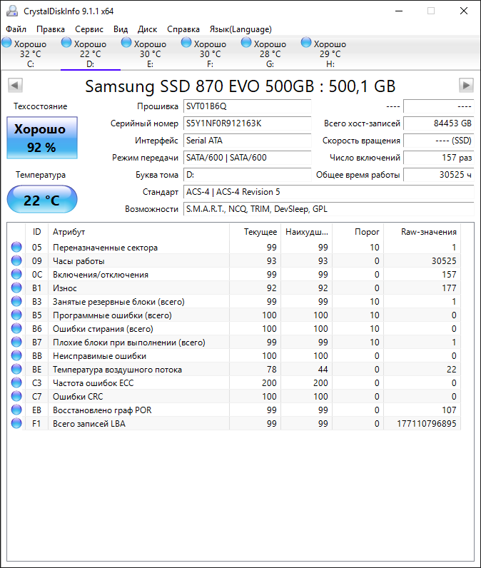 ========================================= Перед публикацией скриншотов Crystal Disk Info в меню "Сервис" >> "Дополнительно" >> "Raw-значения" выберите вариант "10 [DEC]". Это упростит восприятие информации. В меню "Сервис" ставьте галочку "Скрыть серийный номер".