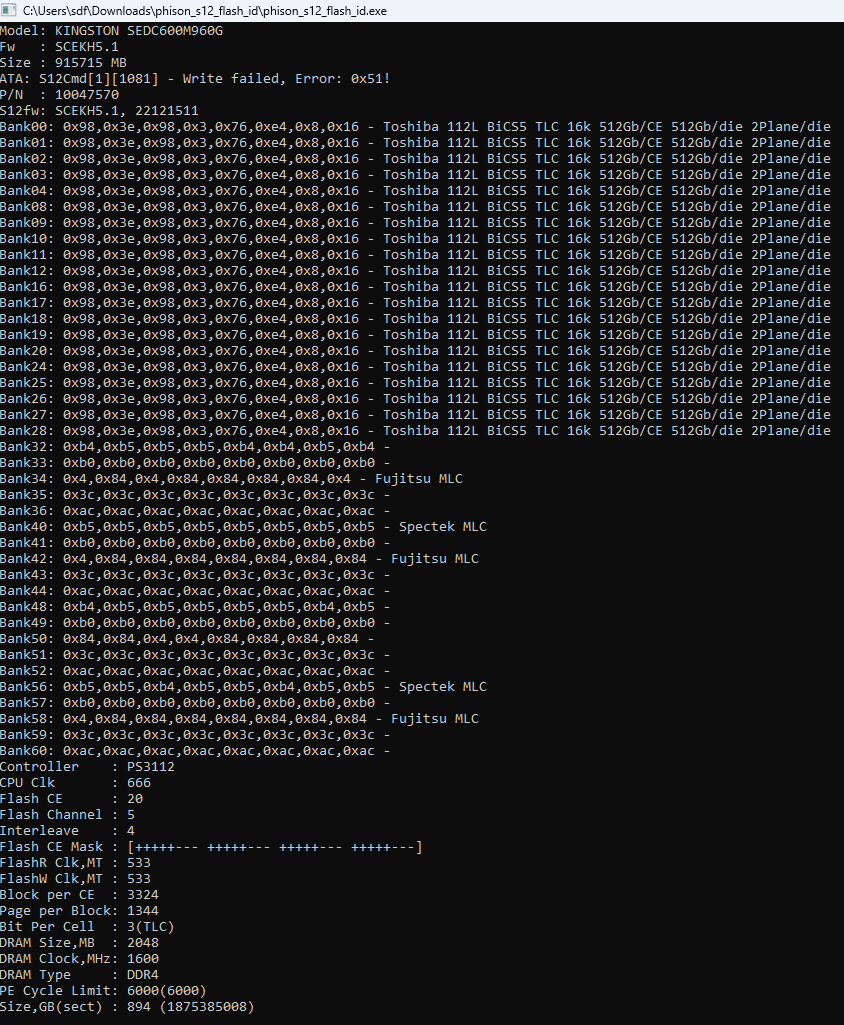 Silicon Motion идёт отдельно. У этих накопителей версия прошивки обычно выглядит как "*хххх#", где * - буква, обозначающая год ("O" соответствует 2015 году), а х - цифры обозначают конкретную дату сборки прошивки (0521 - 21 мая). # - буква, пока неясно. Прямого соответствия нет, но по косвенным признакам наблюдается несколько признаков: - конфигурации не пересекаются по версиям прошивок (например, O0730A, O0521A, O0803B5 - только Silicon Motion SM2256K + 16 nm TLC NAND SK Hynix; N0815B, O0919A - Silicon Motion SM2246EN + MLC NAND). - конфигурации на TLC NAND начались с прошивок вида O****.