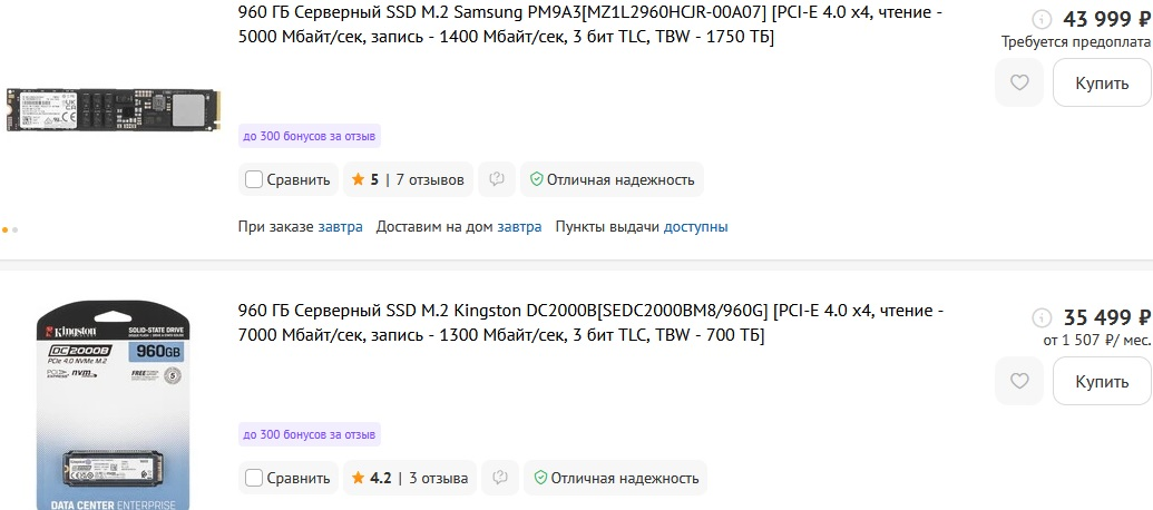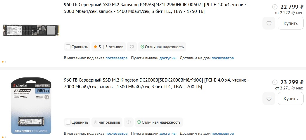 Так что, если нужна комбинация ssd+надежность, это сразу надо в раздел серверных ssd идти.