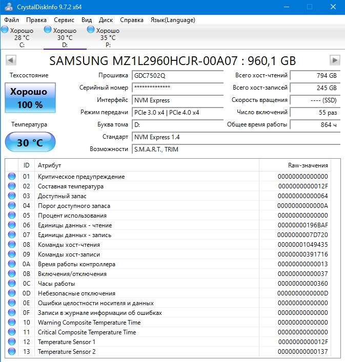 ========================================= Перед публикацией скриншотов Crystal Disk Info в меню "Сервис" >> "Дополнительно" >> "Raw-значения" выберите вариант "10 [DEC]". Это упростит восприятие информации. В меню "Сервис" ставьте галочку "Скрыть серийный номер".