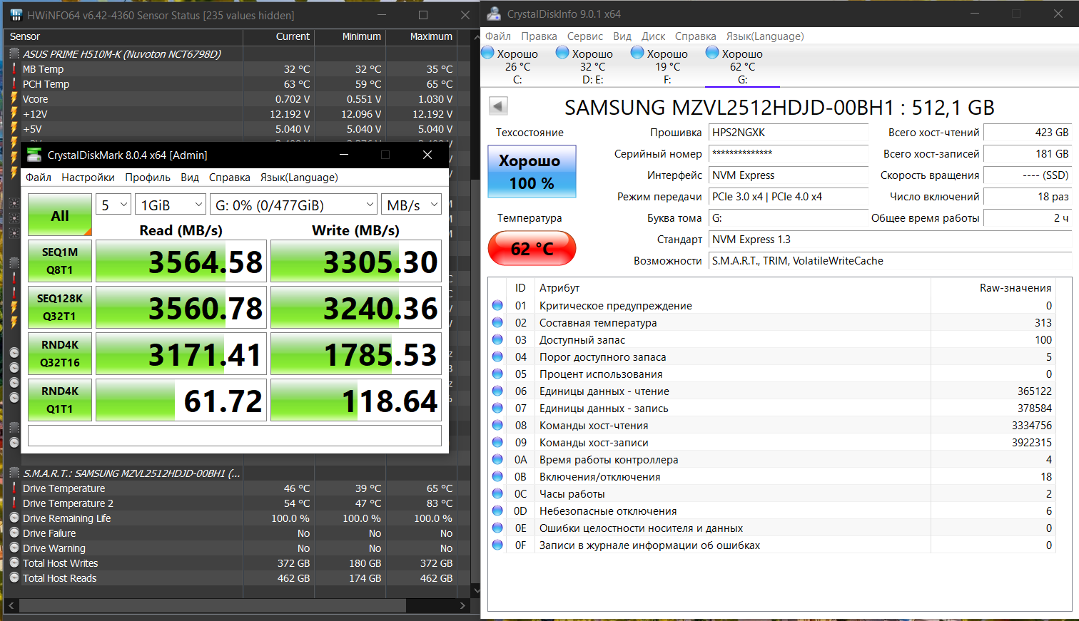 Опознать подделки порой можно даже визуально (не такая печатная плата и расположение микросхем у моделей M.2, не тот корпус для SATA 2.5" и/или его элементы (например, подделки под Kingston собираются зачастую обычными винтиками "под крестовую отвёртку", а не Torx), блёклая краска на этикетках и т.д.), хотя есть и качественные, определяемые только по мелким опечаткам на этикетках, проверкой в программах и поведением в тестах. Самый надёжный способ - только последний, ибо тот же Samsung Magician мошенники уже научились обманывать. Неплохая публикация 2023 года на Пикабу с описанием некоторых таких подделок, целенаправленно приобретённых на Aliexpress (подчеркну ещё раз: по факту их можно приобрести и на российских торговых площадках): https://pikabu.ru/story/feyk_ssd_s_alie ... u_10234249 Видеоролик proSSD о поддельном Kingston KC600 512 Гбайт: https://www.youtube.com/watch?v=XMI9BH_jn2w