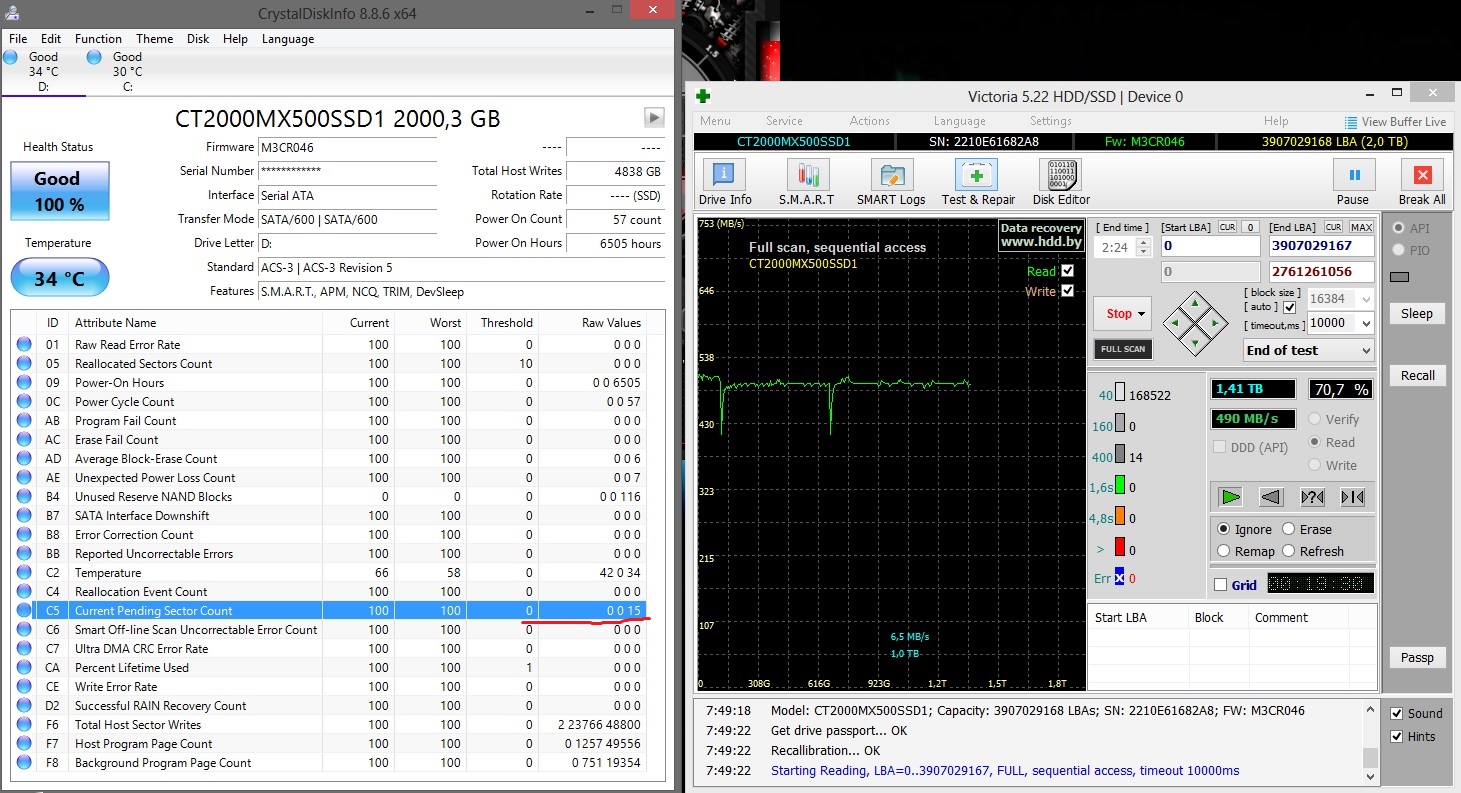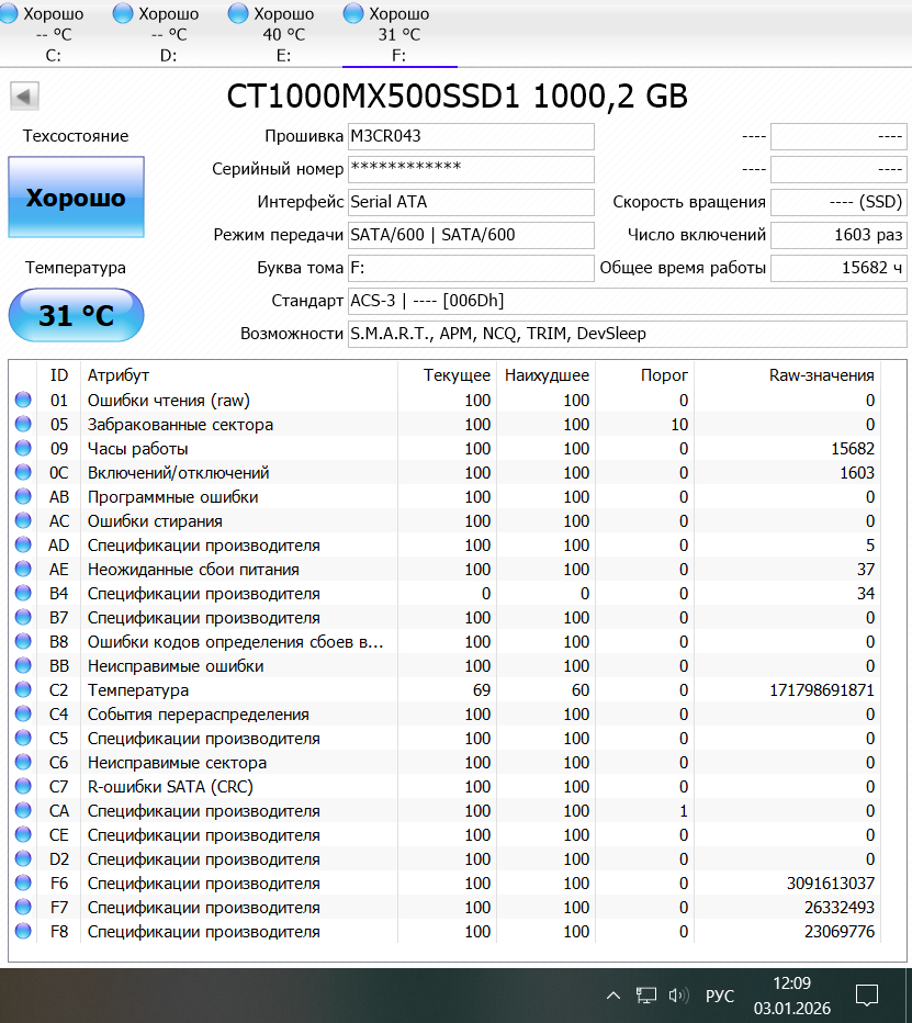 Спасибо за пояснения! F7 и F8 разве должны быть строго одинаковые значения? MX500 не с ОС. чисто файлохранилище, загрузки, картинки и прочий шмурдяк. торренты на него уже не качаю, качал 3-4 раздачи.