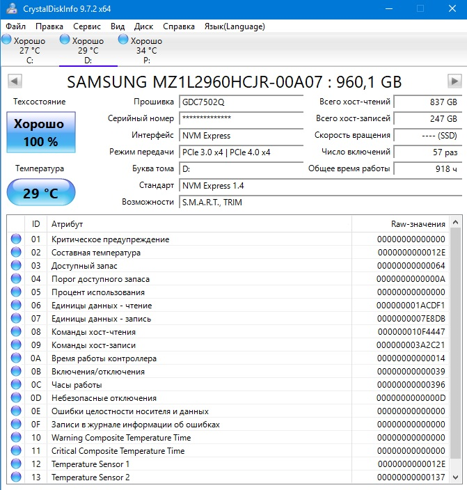 ========================================= Перед публикацией скриншотов Crystal Disk Info в меню "Сервис" >> "Дополнительно" >> "Raw-значения" выберите вариант "10 [DEC]". Это упростит восприятие информации. В меню "Сервис" ставьте галочку "Скрыть серийный номер".