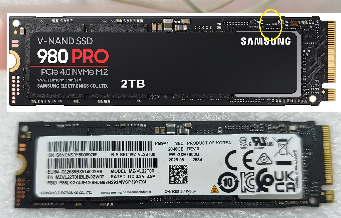 про контроллер меня куда-то не туда понесло, это ж evo plus касалось. а тут вроде кроме пары вариантов флеша разнообразия и вовсе не было. но это у 980pro, а оемный с разным флешем возможно назывались отдельно, pm9a1/pm9a1a. впрочем не уверен.