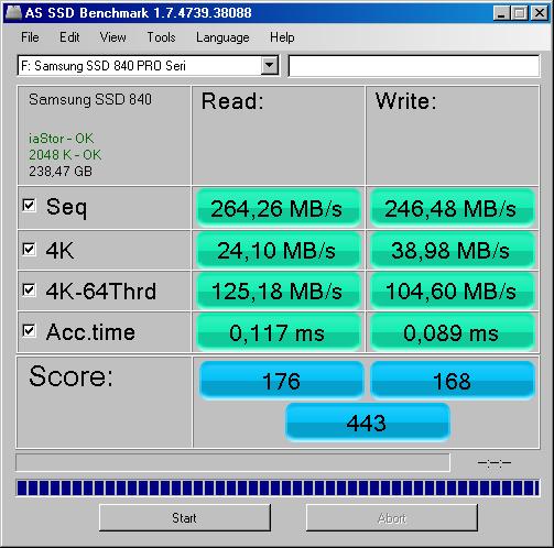 Без условий проведения теста ничего конкретного сказать нельзя...давайте погадаю: Это скрин на компе с очень слабым процессором (скорее даже на ноутбуке) и в режиме SATA-2