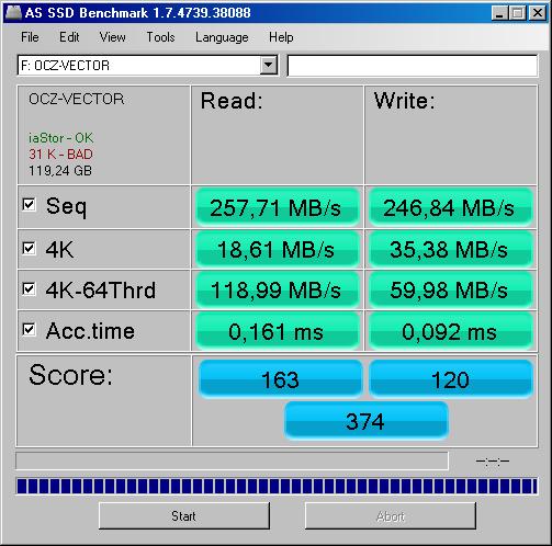 ЗЫ: Можете еще результаты закинуть в базу Статистика скоростных характеристик SSD Для статистики и похвастаться Игнишинов вторых там вроде еще не было - на 240гб.