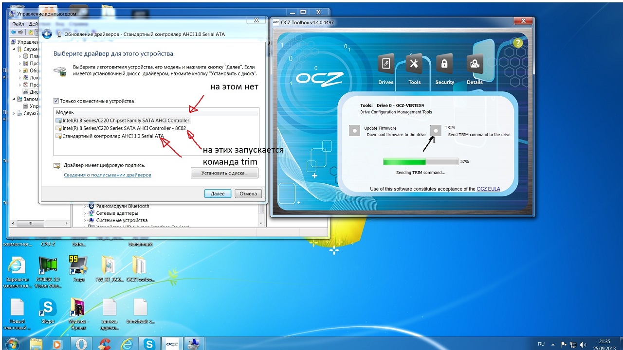 Я так же как и Grant пробовал с обоими SATA драйверами (причём у него интел, а у меня АМД) Пробовал с разным временем и перезагрузкой. Но даже утилита винды делает TRIM, а вот OCZ Toolbox ну ни в какую не хочет, тоже пробовал разные бубны с ним (отключение инета, сетевой платы, разные настройки совместимости)