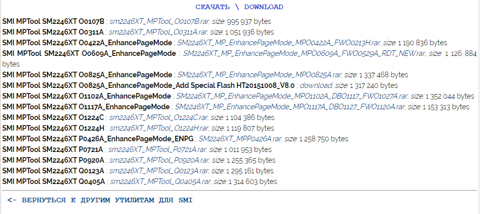 Silicon Motion идёт отдельно. У этих накопителей версия прошивки обычно выглядит как "*хххх#", где * - буква, обозначающая год ("O" соответствует 2015 году), а х - цифры обозначают конкретную дату сборки прошивки (0521 - 21 мая). # - буква, пока неясно. Прямого соответствия нет, но по косвенным признакам наблюдается несколько признаков: - конфигурации не пересекаются по версиям прошивок (например, O0730A, O0521A, O0803B5 - только Silicon Motion SM2256K + 16 nm TLC NAND SK Hynix; N0815B, O0919A - Silicon Motion SM2246EN + MLC NAND). - конфигурации на TLC NAND начались с прошивок вида O****.