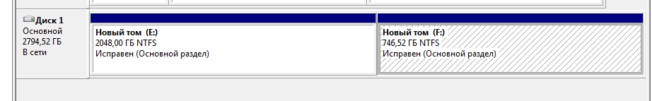 Вот 4 Тб для экспериментов под рукой не оказалось, но трехтерабайтник все же его "брат по несчастью". Как видим на картинке, на диске объемом 3 TB имеется MBR и два раздела. Отличия четырехтерабайтника будут только в размере второго раздела.