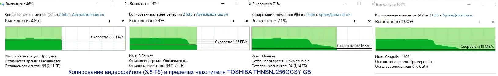 Но почему то при копировании, именно от объёма (копирования) всё равно на 50% (на этом показателе) происходил спад с любых скоростей на любые (2.2Гб\сек до 170Мб\сек), в зависимости от файлов (мелкие\большие).