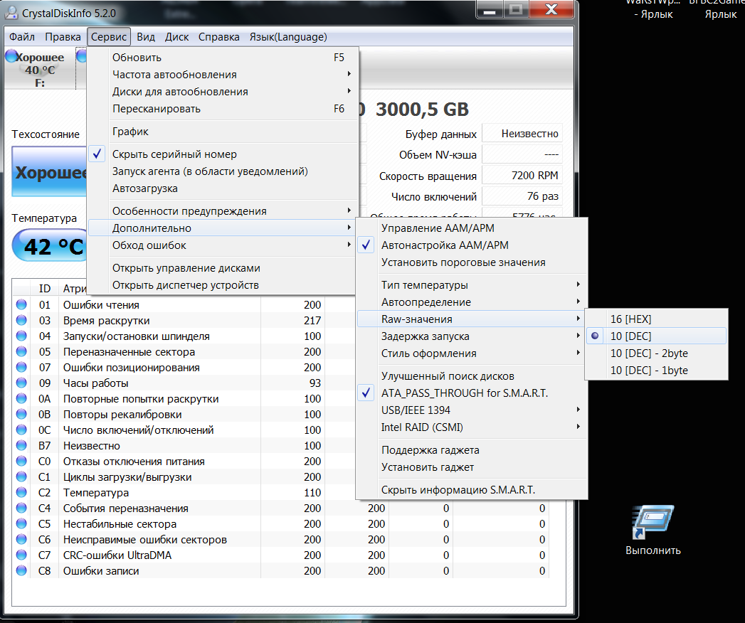 Будьте добры S.M.A.R.T Crystal Disk Info на языке 10 DEC