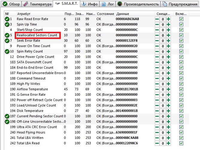 Смущает параметр Reallocated sectors count в СМАРТе. Это вообще очень страшно или как?