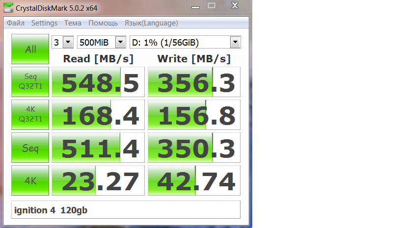 Никакого общения здесь быть не должно, только свой результат в одном из популярных бенчмарков. В очередь, конечно, CrystalDiskMark.