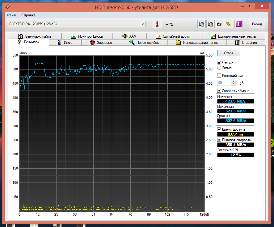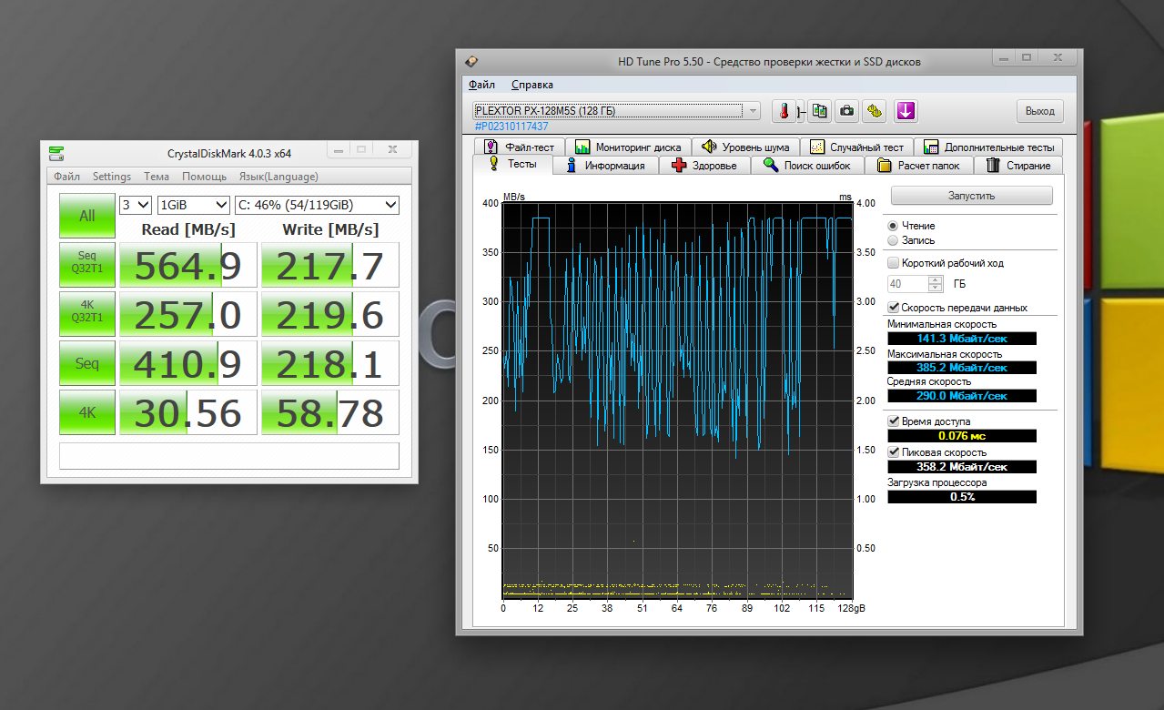 Доброго времени суток! Имею Plextor M5S 128gb, сегодня вот надумал обновить прошивочку диска (проблем не было, просто "а почему бы и нет"), что собственно и сделал. Была 1.03, стала 1.05. Обновилась без проблем. Но после обновления решил прогнать тесты, поглядеть как оно. Получилось вот что: