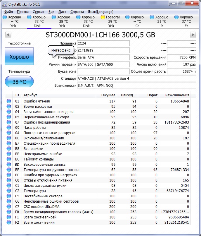 8. У моего винчестера Seagate в полях S.M.A.R.T. “Raw Read Error Rate”/“Seek Error Rate”/“Hardware ECC Recovered” совершенно дикие значения, в то время как у накопителей иных производителей там нули. Это нормально?